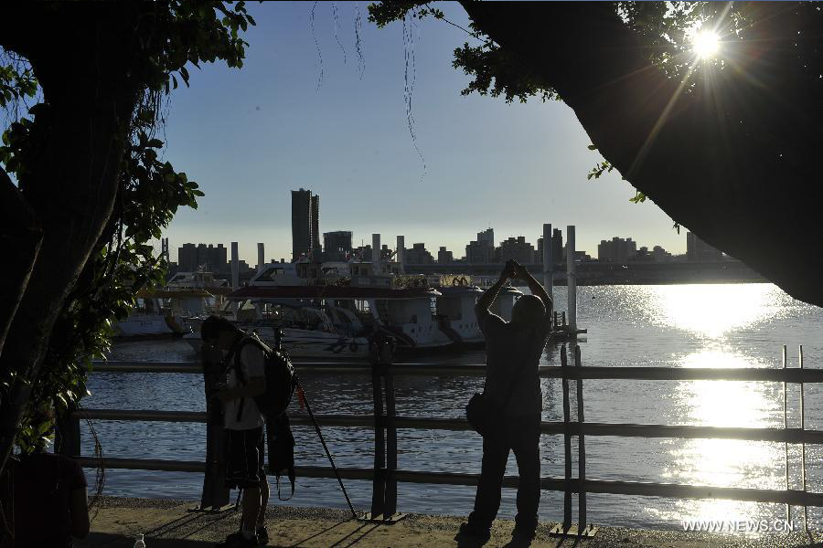 Tourists take photos by the Dadaocheng wharf in Taipei, Southeast China's Taiwan, August 27, 2013. Dadaocheng was an important trading port in the 19th century, and is now a tourist attraction and shopping area.[Photo/Xinhua]
