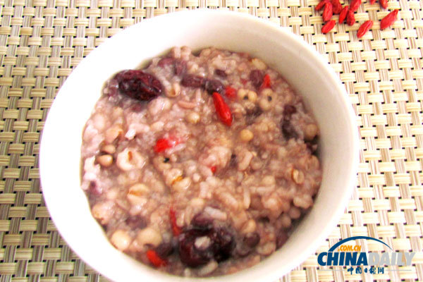 Coix seed, red bean, glutinous rice, dates, Chinese wolfberries.