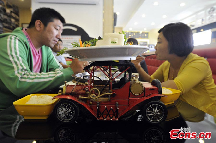 Photo taken on September 9, 2013 shows a car-themed restaurant in Taiyuan, capital city of north China's Shanxi province. (Photo/Wei Liang)