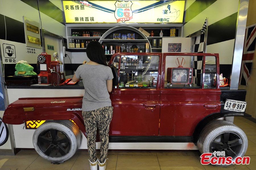 Photo taken on September 9, 2013 shows a car-themed restaurant in Taiyuan, capital city of north China's Shanxi province. (Photo/Wei Liang)