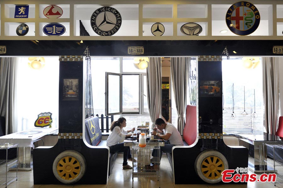 Photo taken on September 9, 2013 shows a car-themed restaurant in Taiyuan, capital city of north China's Shanxi province. (Photo/Wei Liang)