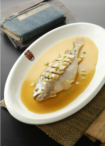 The yellow croaker from the East China Sea is rich in protein, minerals and vitamins. The fish is steamed with chicken gravy, making this dish an exceptional delicacy while retaining the yellow croaker’s original flavor.