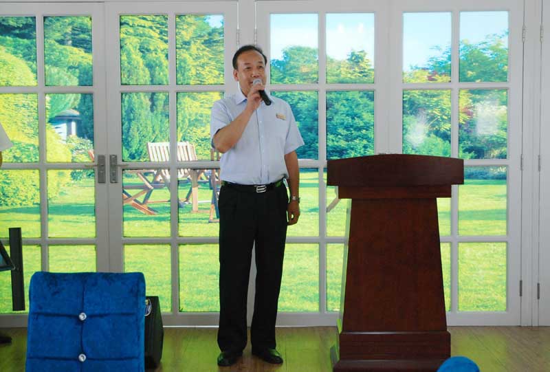 Zhang Wei, manager of the Tayuan Diplomatic Residence Compound property department, speaks at the welcoming ceremony. The farm activity was held by the Tayuan DRC property department, with the purpose of helping diplomatic personnel and their families learn more about China. [Photo by Wu Bo/chinadaily.com.cn] |