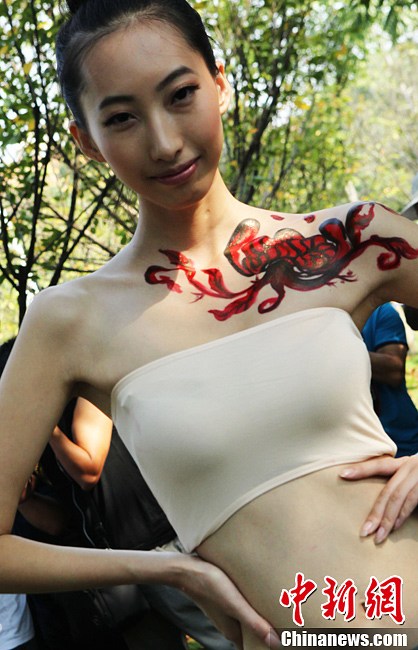 40 contestants from Chinese cities attended 2013 Miss Tourism Queen International Elite Pageant in Xianning, central China’s Hubei province on Sept. 20, 2013. They put arts painting on their bodies, which attracted attention from photographers and many spectators.