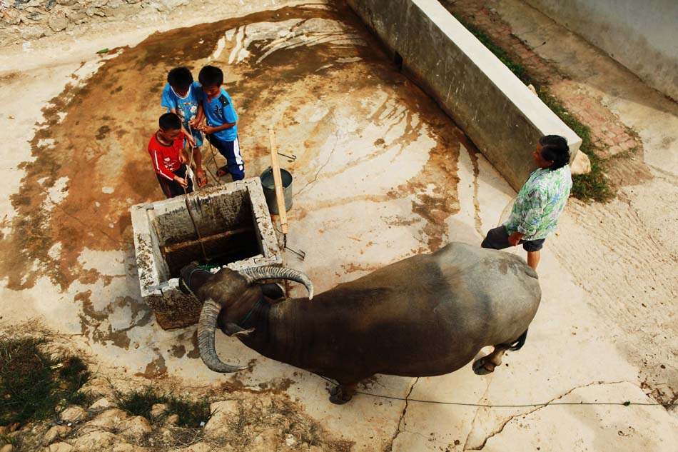 Children get water from a well in a village in Yunnan, southwest China [Provided to People's Daily Online/Jin Jiamao]