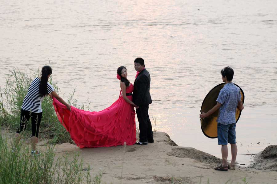 A couple takes wedding photos at the bank of the Yellow River in Yuncheng, Shanxi province.