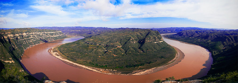 A panorama of the Yellow River, at the Hekuai Li Great Bend. [Photo: CRIENGLISH.com/William Wang]