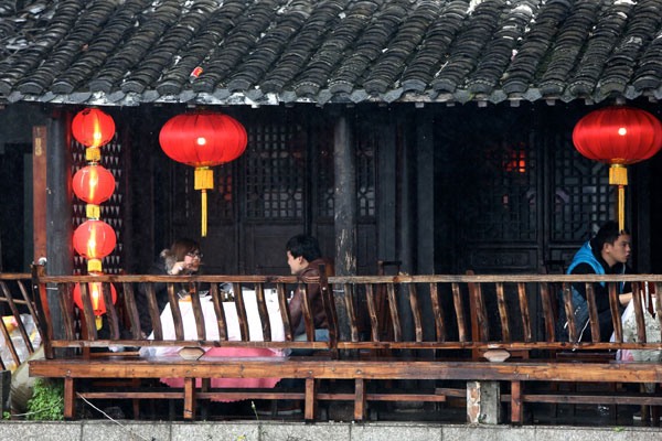 Teahouses on riverbanks are the best places to experience the relaxing life in Xitang.