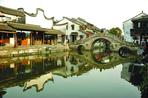 Xitang is part of Jiashan county in Zhejiang. It is divided into eight areas by nine river channels, which are connected by 27 bridges and hundreds of boats.