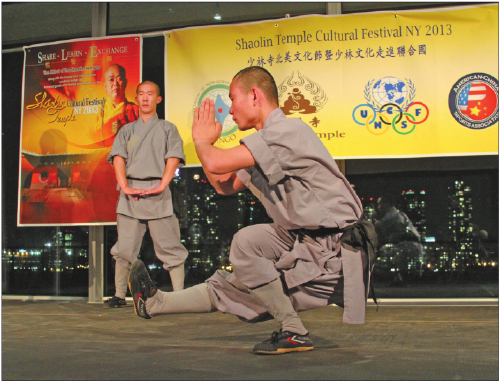 Monks from the Shaolin Temple perform kung fu at the United Nations headquarters during the 2013 Shaolin Temple Cultural Festival. |