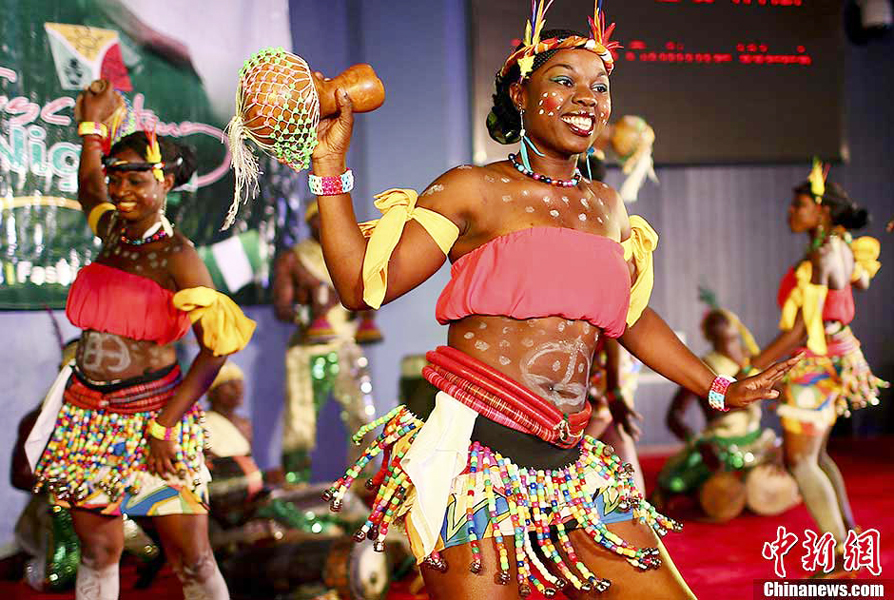 African beauties dance at Nigerian Cultural Week in Nanjing, east China's Jiangsu Province, Oct. 15, 2013. (CNS/Yang Bo)