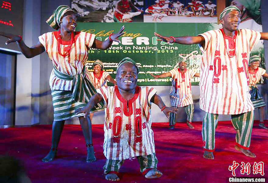 Nigerian dancers perform at Nigerian Cultural Week in Nanjing, east China's Jiangsu Province, Oct. 15, 2013. (CNS/Yang Bo)