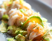 The most exotic offering may be the roasted bone marrow, which we tried on a second visit. Diners unfamiliar with the concept may greet the idea with a bemused "thanks but no thanks". We adopted a when-in-Rome mentality, however, and were rewarded with savory, slow-braised oxtail served on top of the gelatinous bone marrow, a mouth-watering treat served with chanterelle mushrooms, caramelized onions and a North African herbal sauce, green chermoula.