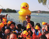 Jakie Chan sees Rubber Duck off in Beijing  Leaving the nest  Admirers to bid joyful goodbye to Rubber Duck