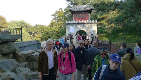 People of different ages and backgrounds gather for the annual "Walk Around Kunming Lake for International Friends" at the Summer Palace, Beijing, Oct. 26. They relaxed with a leisurely walk and enjoyed the beauty of the palace landscape. (Photo: China.org.cn)