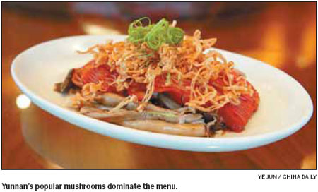 Yunnan's popular fungus are everywhere on the menu: tree mushrooms with dried cuttlefish, beef slices fried with fresh Matsutake mushroom and morel boiled with old chicken soup.