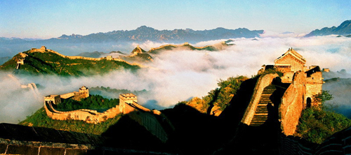 Another section of the Great Wall that thrills visitors is the Panjiakou Underwater Great Wall, 60 kilometers northwest of the county seat of Qianxi in Hebei. In the Ming Dynasty it was part of the defense against Mongolians, at the Jizhen garrison. As time passed with changing water levels, a part of the Great Wall became submerged in the Panjiakou Reservoir, while the rest still remains above the surface, scaling up the mountain westward. The submerged walls and towers, visible from above the water, resemble a swimming dragon. The two parts form a rare and wonderful panorama that blends ancient military architecture and lake and mountain views.