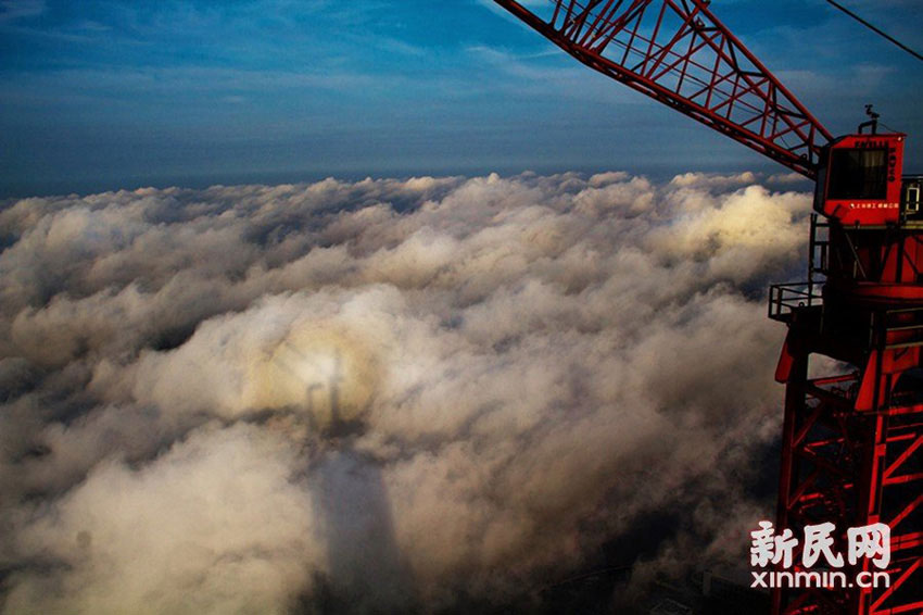 Rainbow, photo by Wei Gensheng. As a shutterbug, Wei seized a rare rainbow ring amid clouds on top of the Shanghai Tower.