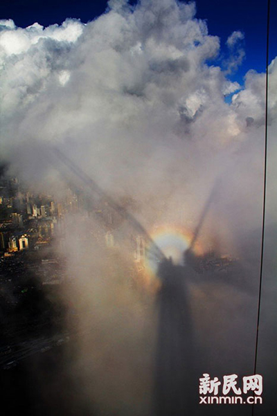 Rainbow, the Huangpu River and clouds that envelop the building, photo by Wei Gensheng. Wei made up for amateur photo-taking skill with long-term observation and special perspective.