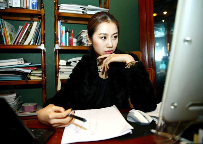 Chinese supermodel Chen Lu works in her studio in Shanghai on November 19, 2013. Chen, who started modeling at the tender age of 16, is now a designer for Movous, a local brand specialized in wedding dresses. Chen is married to Chinese bastketball superstar Sun Yue. [Photo/Xinhua]