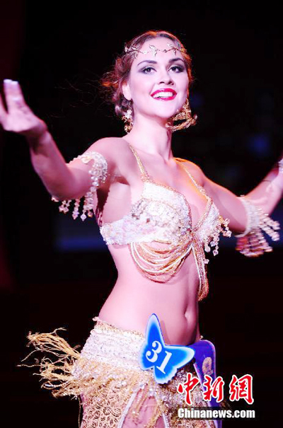Contestant poses at the 25th Miss Model of the World International Grand Final Contest held in Shenzhen, south China's Guangdong province, Nov. 20, 2013. (Photo/CNS)