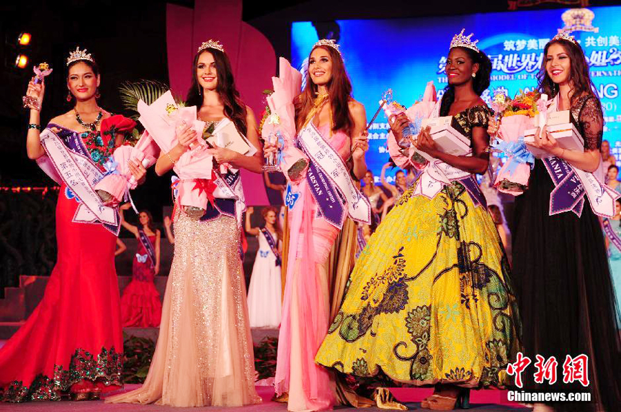 Winners pose for a group photo at the 25th Miss Model of the World International Grand Final Contest held in Shenzhen, south China's Guangdong province, Nov. 20, 2013. (Photo/CNS)
