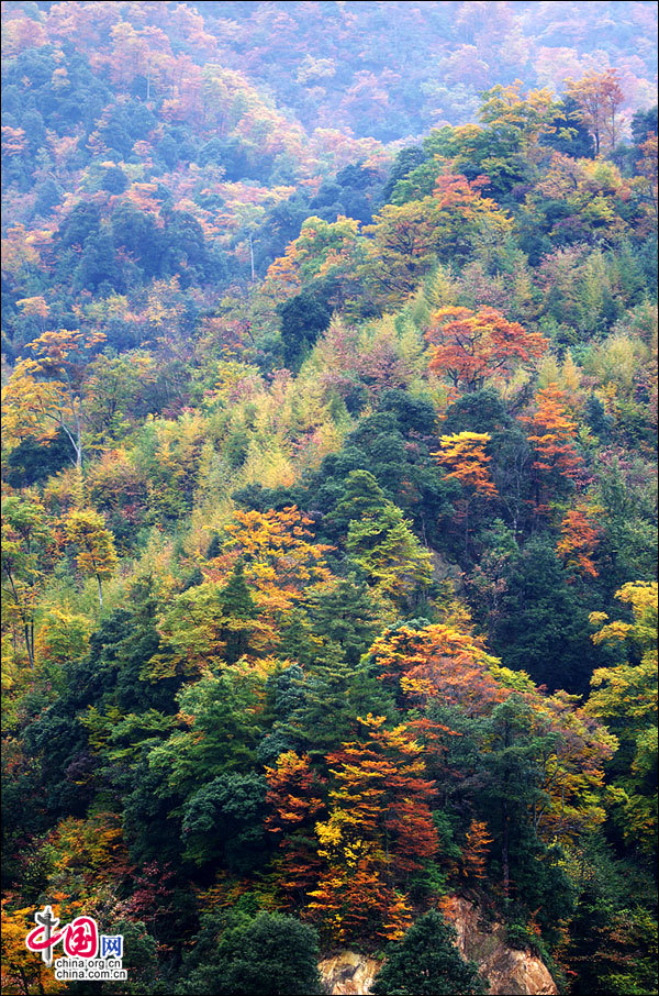 Photo shows a view on the Guangwu Mountain in Nanjiang County, southwest China's Sichuan Province. The mountain has 12 natural scenic areas and 333.3 square kilometers of virgin forest. [China.org.cn]