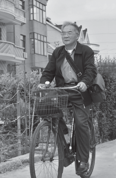 Lu Defu, 67, rides his bicycle on the streets of Xinchang in Pudong New Area, Shanghai, to take pictures of elderly residents in the old town.