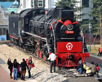 Vintage locomotive displayed at Central South University, Changsha  Family in the frame   A sight for sore thighs