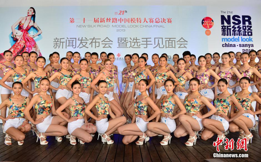 Contestants of the 21th New Silk Road Model Look China Final 2013 make appearance in a scenic spot in Sanya City, south China's Hainan Province, Dec. 10, 2013. The final will be held on Dec. 15, 2013. (Source: Xinhuanet.com/Chinanews.com)