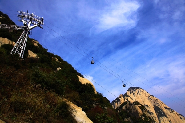 Mount Hua scenery celebrates the best of all four seasons. In spring it abounds in peach blossoms and other wild flowers. The weather is cool and pleasant in summer – a good time for visitors to see glorious sunrises and sunsets as well as waterfalls. Autumn is the perfect temperate season for photo-graphy and mountain climbing. In winter, visitors can enjoy a vista of snow-covered pines and peaks and white clouds against a blue sky.