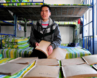 Duan Yinkai, an inheritor of the tie-dye technique, takes out stitches from the tie-dye cloth in a dyehouse in Bai Autonomous Prefecture of Dali, southwest China's Yunnan Province, Dec. 12, 2013. Duan learnt the tie-dye technique from her parents, and she started to work on it when she was 17 years old. In the following years, not only did Duan create new colors and categories, she also imparted her experience to her prentices. As a traditional folk technique of the Bai ethnic group, tie-dye was listed in 2006 into state-level intangible cultural heritages. Nowadays, with the development of color pad dyeing technique, tie dye products present locals and tourists with a more colorful and charming characteristic. [Photo/Xinhua]
