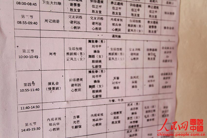 The students' timetable. (Photo/Chinapic.people.com.cn) |