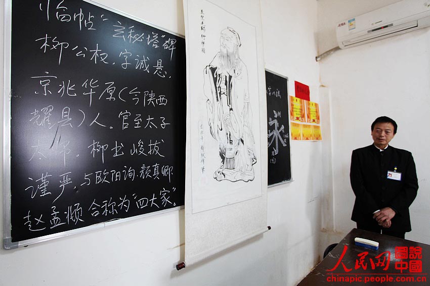 A teacher tells the student how to write calligraphy. (Photo/Chinapic.people.com.cn) |