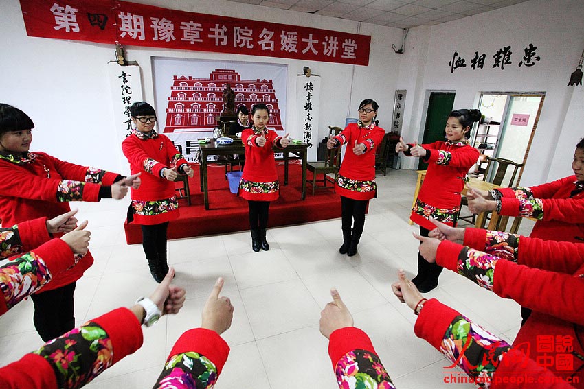 Etiquette is also an important course for girl students. (Photo/Chinapic.people.com.cn) |