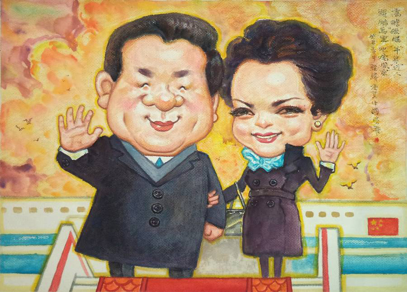 The Chinese leader stepped off the plane with his wife Peng Liyuan. The couple wore dark coats lightened by Peng's blue scarf.