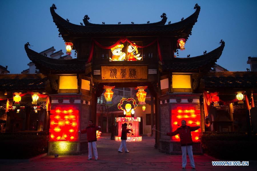 People play diabolo during a lamp festival in Hefei, capital of east China's Anhui Province, Dec. 18, 2013. (Xinhua/Du Yu)