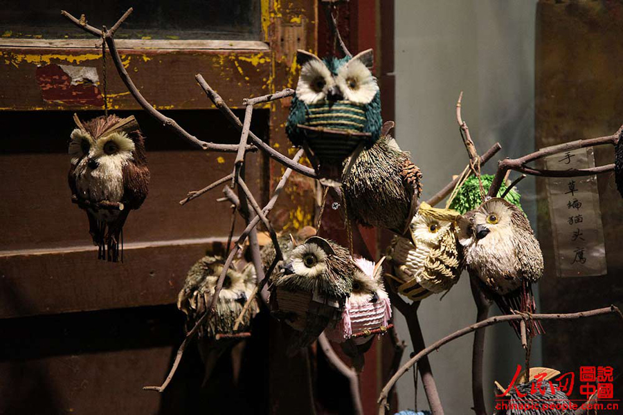 Hand-weaved owls are sold in a souvenir shop. (Photo/ chinapic.people.com.cn)