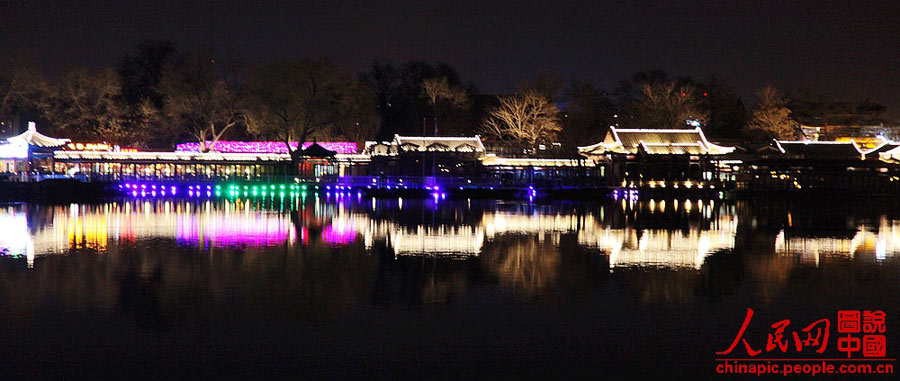 Houhai Lake in Beijing at night. Houhai (literally: Back Sea) is the largest of the three lakes, along with Qianhai (literally: Front Sea) and Xihai (literally: Western Sea), that comprise Shichahai, an historic scenic area in Beijing. (Photo/ chinapic.people.com.cn)