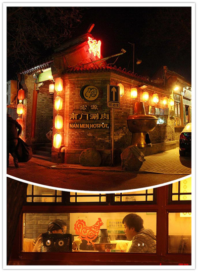 A Beijing-style hotpot restaurant In tradition, hot pots are often eaten in winter for people to warm up. Typical hot pot dishes include sliced lamb or beef, leaf vegetables, seafood, mushrooms, noodles, and dumplings; food is boiled in hot soup and cooked food is eaten with a dipping sauce. (Photo/ chinapic.people.com.cn)