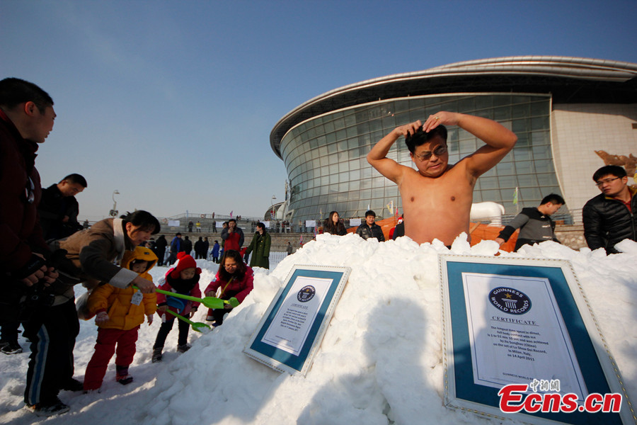 Chinese 'Iceman' braves freezing weather in Tianjin