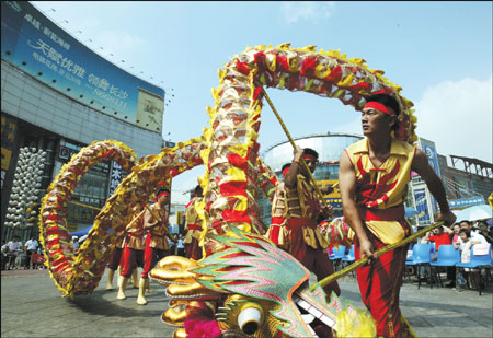 Sun also recalled the nine-dragons dance in Pingjiang, which was on the first list of China's intangible cultural heritage. It could be the most complicated dragon-worship activity in the nation involving the most detailed and meticulous procedures.