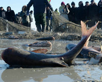 Participants prepare to run into English Bay during the 94th annual New Year's Day Polar Bear Swim in Vancouver, British Columbia Jan 1, 2014. [Photo/Agencies]