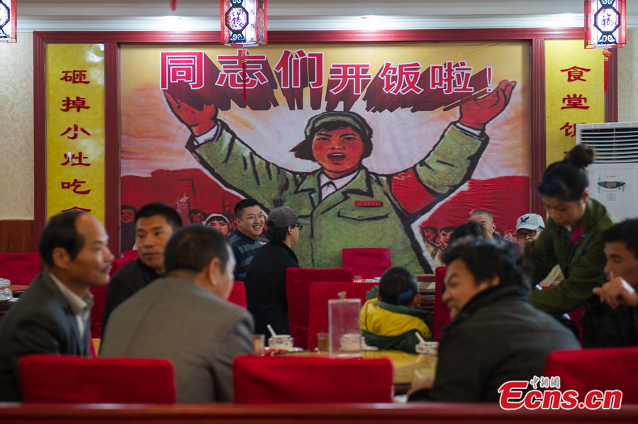 Photo taken on Jan 2, 2014 shows a restaurant, under the theme of people's commune, in Kunming of southwest China's Yunnan province. [Photo: China News Service / Ren Dong]