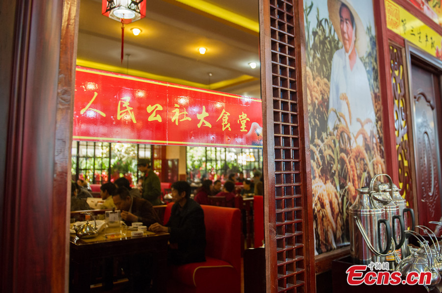 Photo taken on Jan 2, 2014 shows a restaurant, under the theme of people's commune, in Kunming of southwest China's Yunnan province. [Photo: China News Service / Ren Dong]