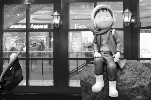 A sculpture of Xiao Mi, a character in Jimmy Liao's How to Own a Corner, is displayed on the first floor of Joy City.
