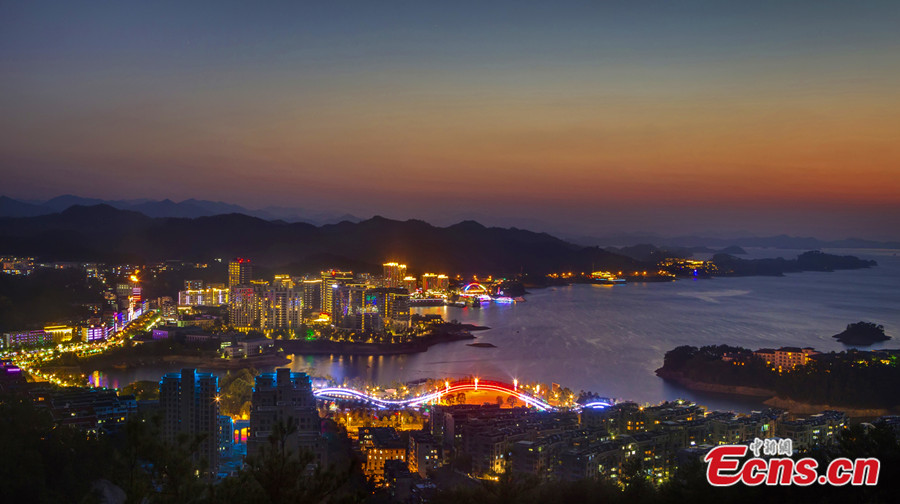 The new top ten sceneries of Qiandao Lake is unveiled recently. Qiandao Lake, located in Chun'an County of Zhejiang province, is a man-made lake. A total of 1,078 large islands dot the lake and a few thousand smaller ones are scattered across it. The lake covers an area of 573 km2 and has a storage capacity of 17.8 km3. [Photo: China News Service / Zhou Shuangcheng]