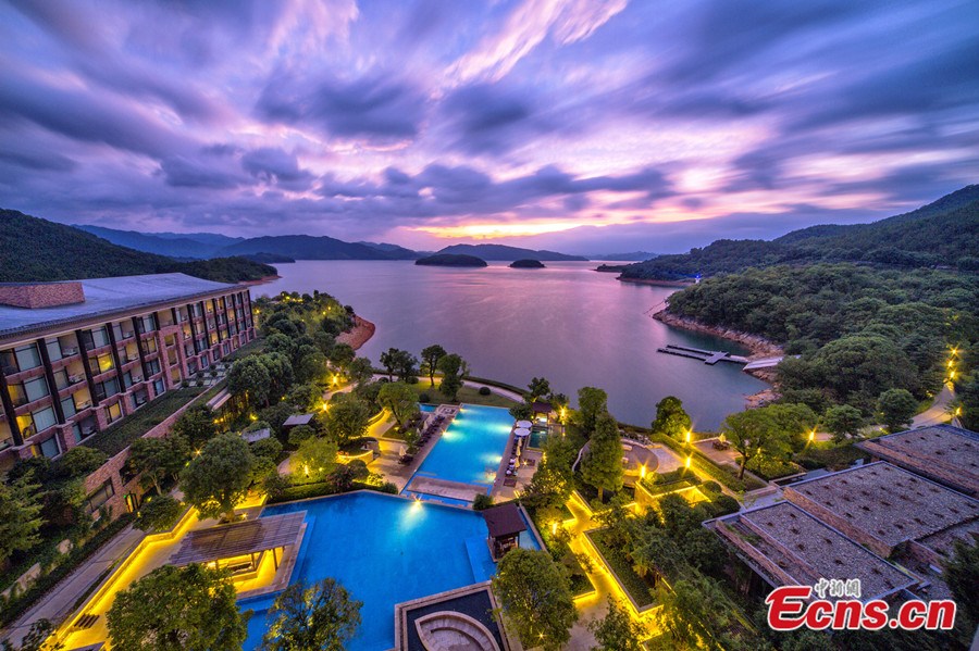 The new top ten sceneries of Qiandao Lake is unveiled recently. Qiandao Lake, located in Chun'an County of Zhejiang province, is a man-made lake. A total of 1,078 large islands dot the lake and a few thousand smaller ones are scattered across it. The lake covers an area of 573 km2 and has a storage capacity of 17.8 km3. [Photo: China News Service / Zhou Shuangcheng]