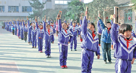 Hefei Shilimiao Primary School students start mornings with a special regimen performed with abacuses. Provided to China Daily