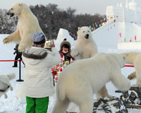 Stuffed polar bears displayed at Int'l Snow Sculpture Expo